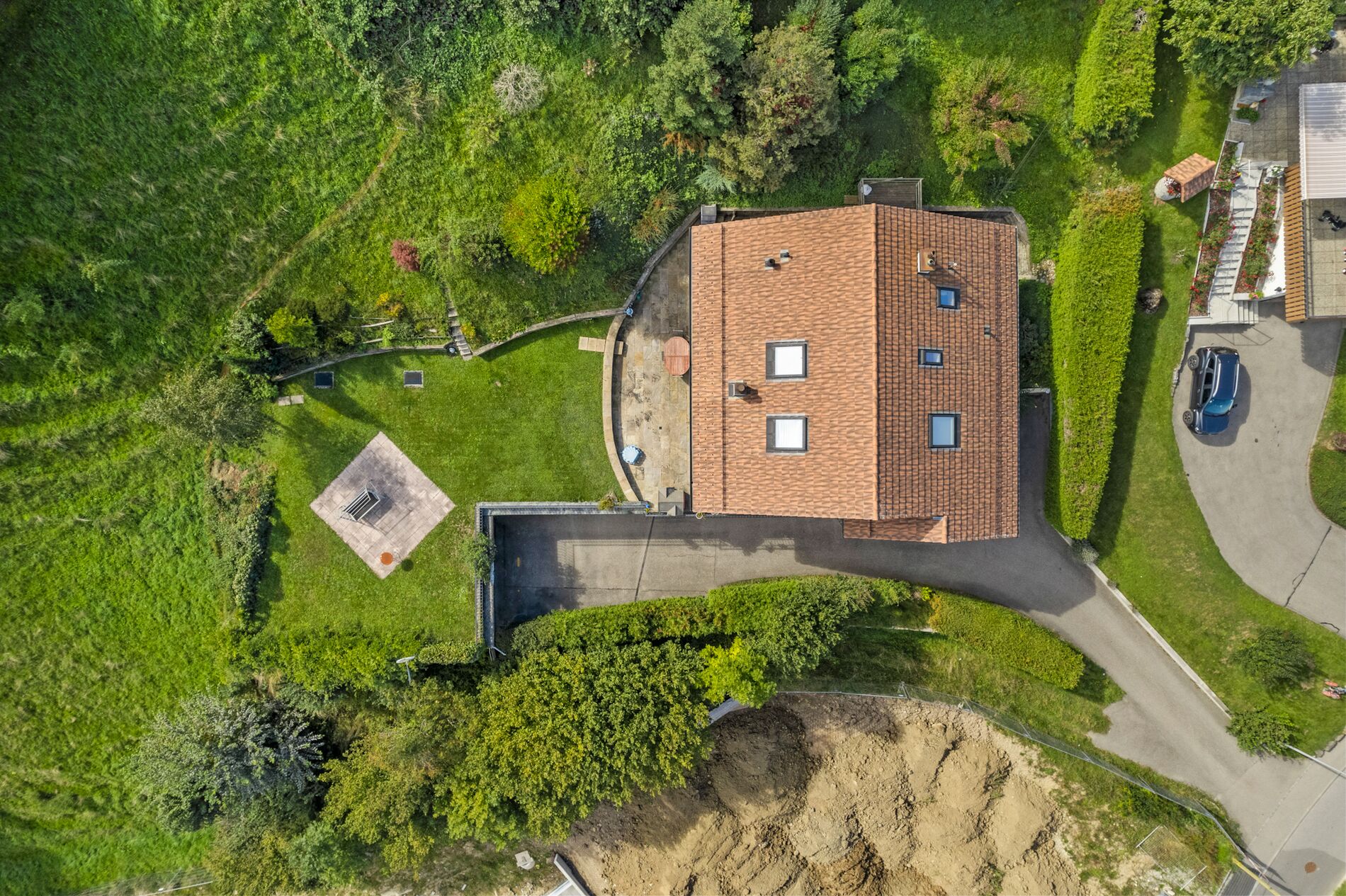 Cette grande habitation jouit d’un atelier, une salle de musique insonorisée/carnotzet, un garage pour 4 véhicules. En extérieure, il est possible de parquer 5 véhicules complémentaires.