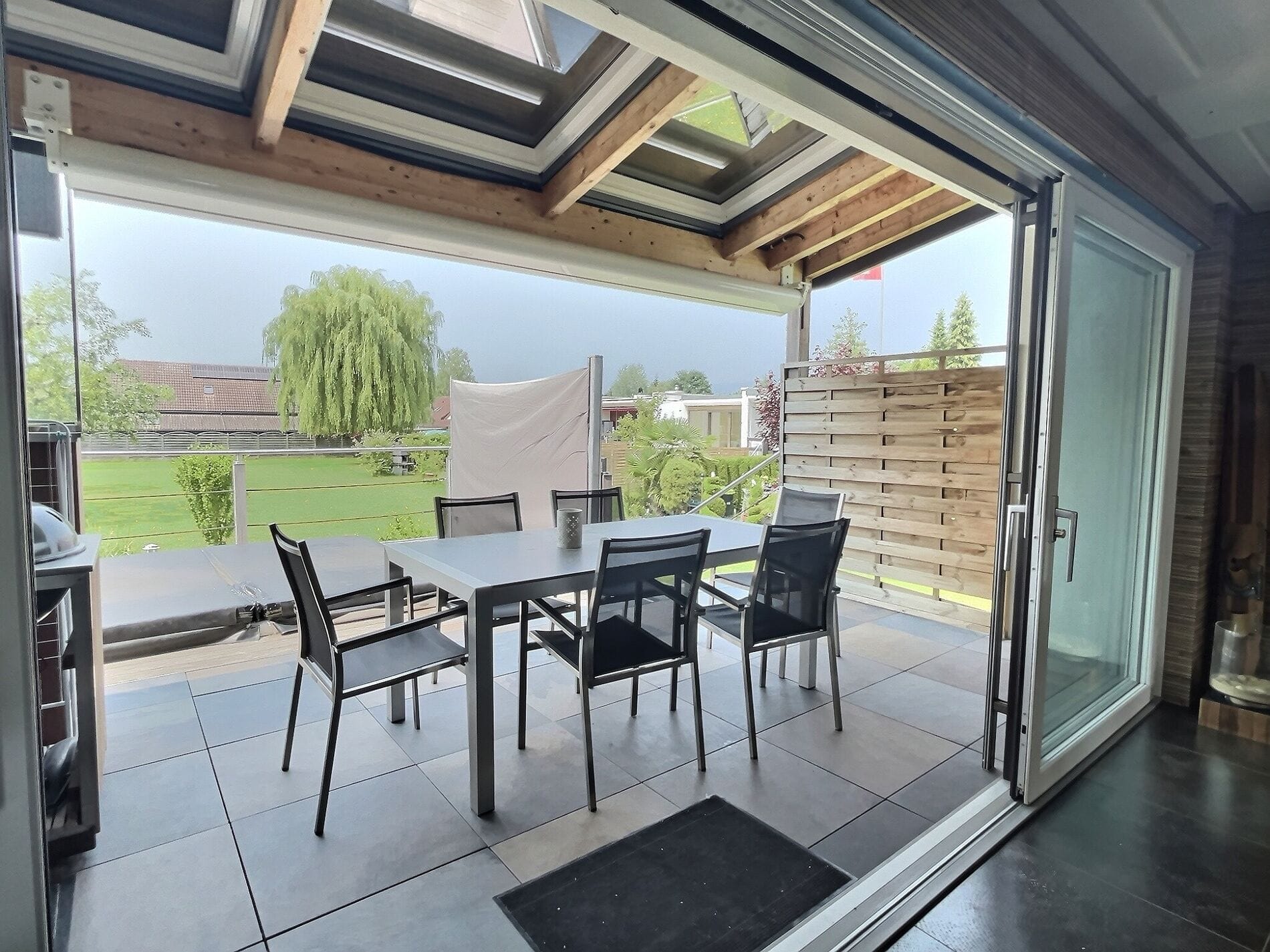 Cette résidence de 2,5 pièces entièrement rénovée (isolation, fenêtres, chauffage, terrasse etc..) en 2012 avec des matériaux de haute qualité, offrant confort et élégance.