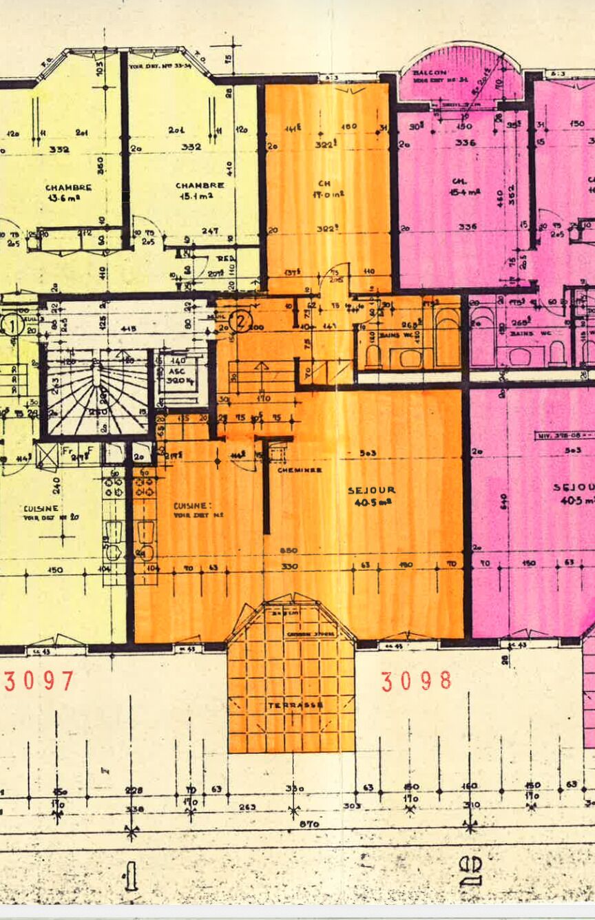 À l’arrière de l’appartement, sur un demi-niveau, se trouve la partie nuit, pensée comme un véritable cocon. Elle comprend une très spacieuse chambre avec armoires encastrées ainsi qu’une salle de bains confortable, offrant calme et intimité.