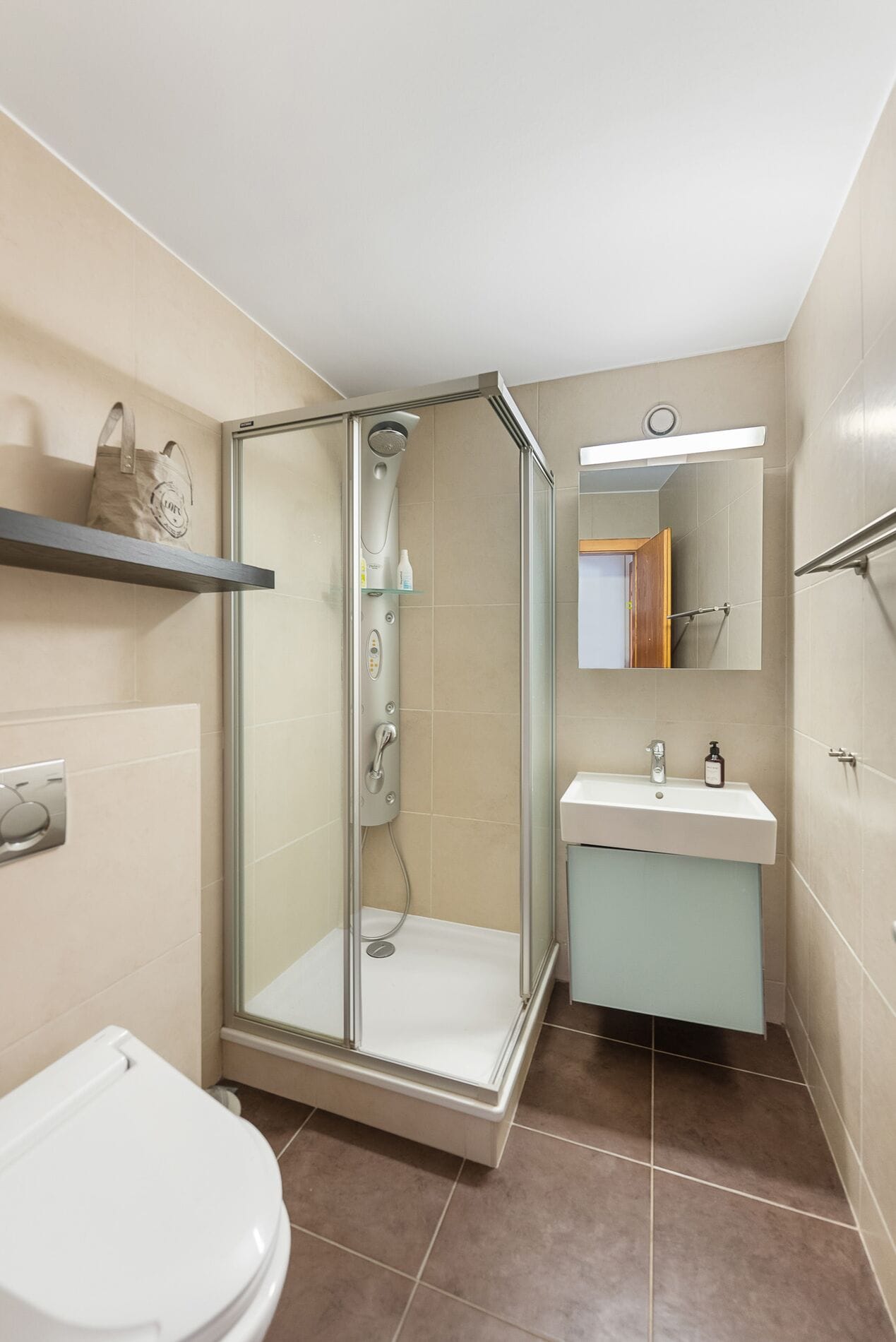 L’appartement dispose de quatre chambres, dont une vraie suite parentale avec salle de bains équipée d’un bain à bulle et d’une douche à jets, véritable havre de bien-être.