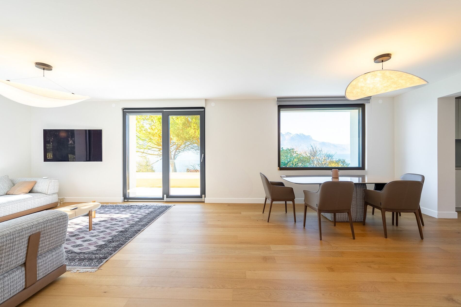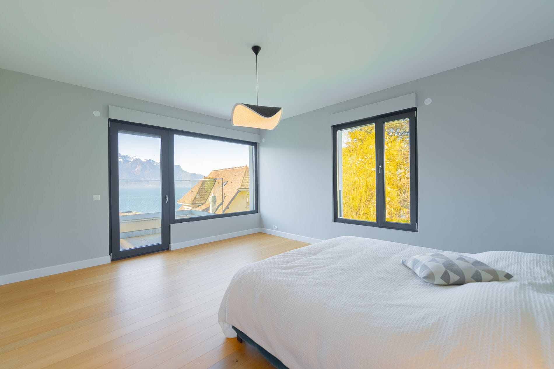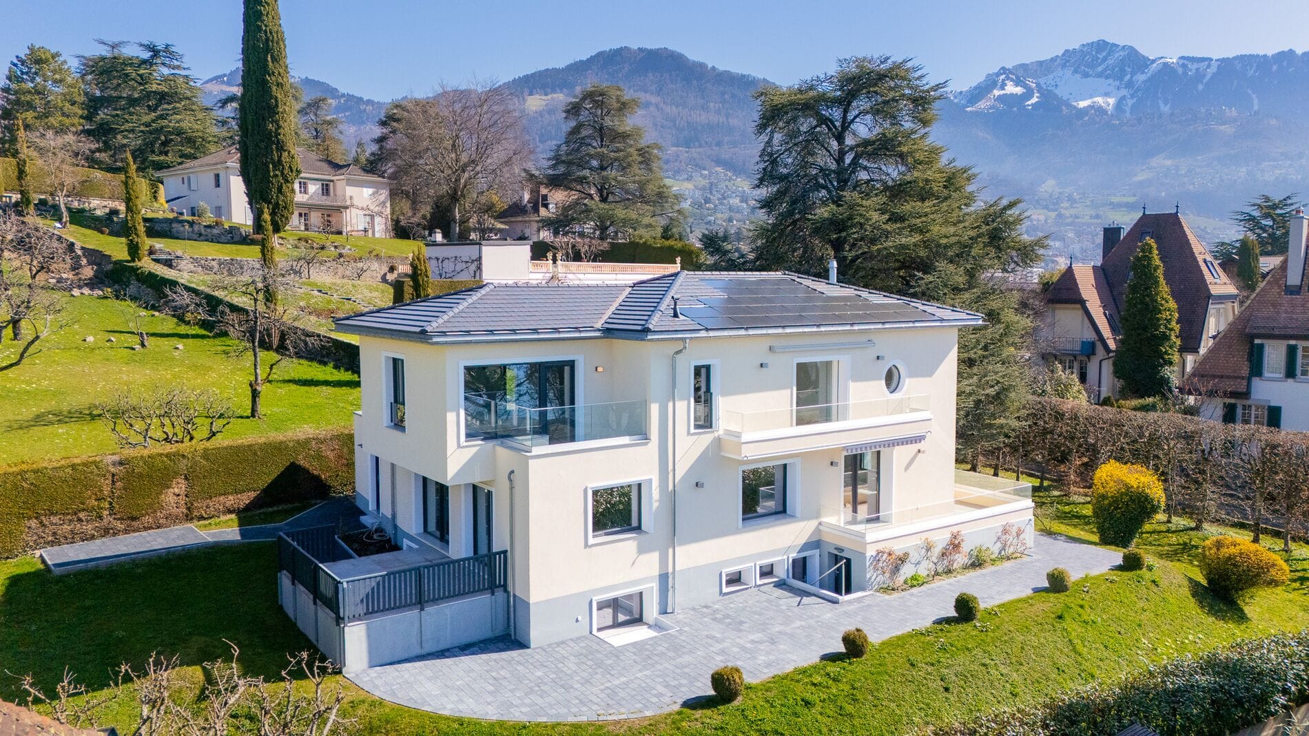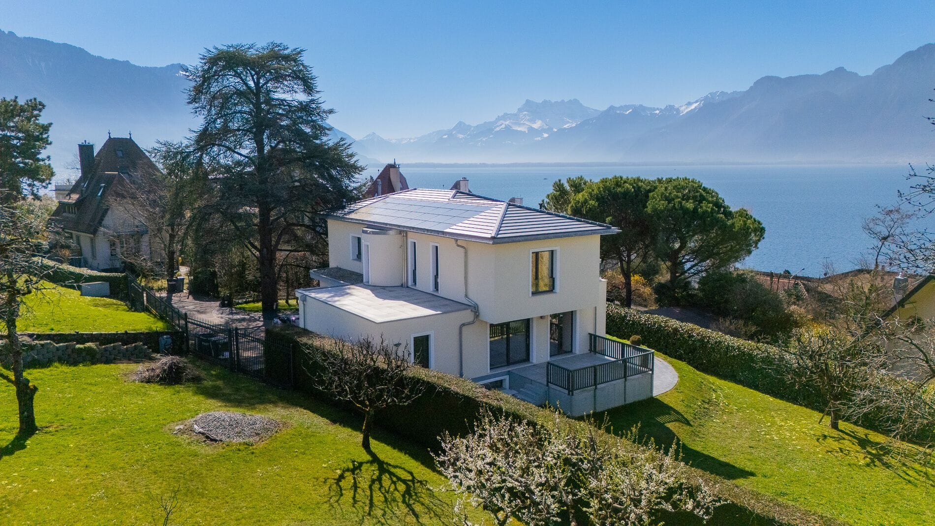 A l’entrée de Clarens, dans un quartier résidentiel de villas, face au lac et les Alpes, voici une splendide villa entièrement rénovée et transformée.