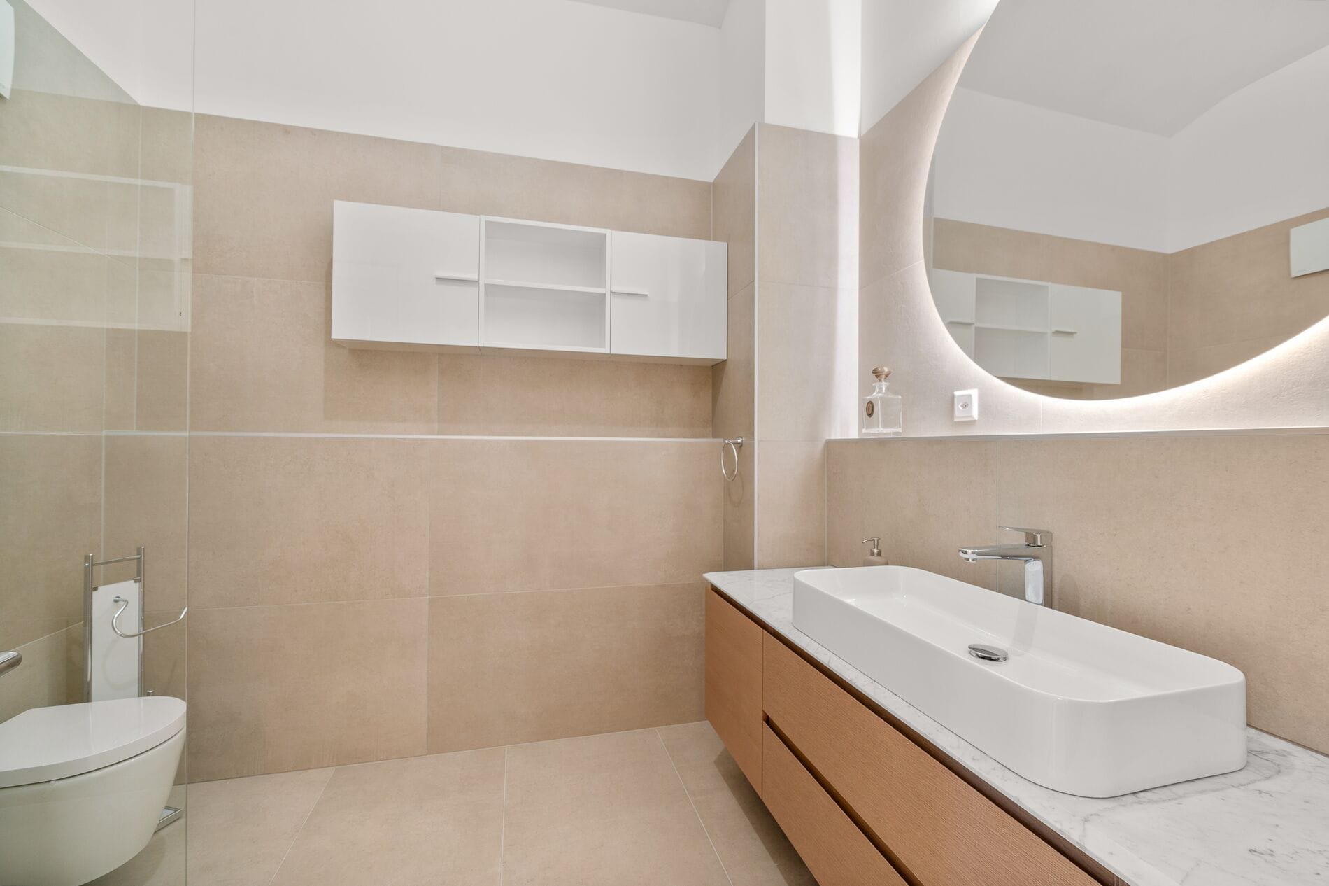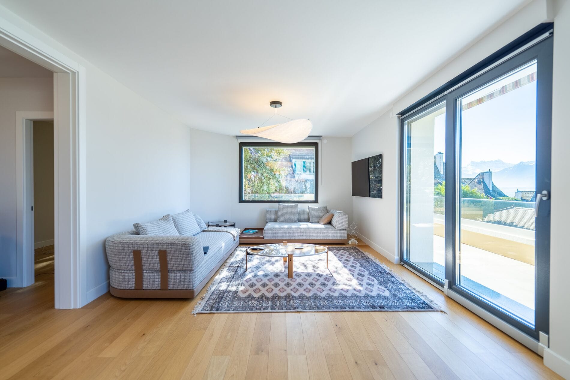 De grand standing grâce à des matériaux élégamment choisis, chaque pièce bénéficie d’une importante luminosité grâce, notamment, aux grandes ouvertures vitrées.