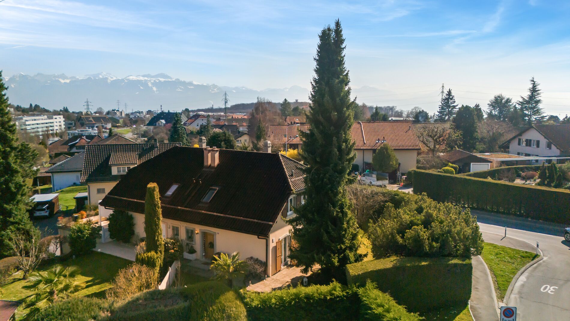 Située dans un quartier résidentiel de villas particulièrement apprécié du Mont-sur-Lausanne, cette charmante villa jumelle bénéficie d’un environnement calme, verdoyant et familial, tout en profitant de la proximité immédiate des commerces, des écoles et des commodités. Implantée sur une belle parcelle, elle est entourée d’un vaste jardin joliment exposé, offrant des espaces extérieurs généreux et agréables à vivre tout au long de l’année.