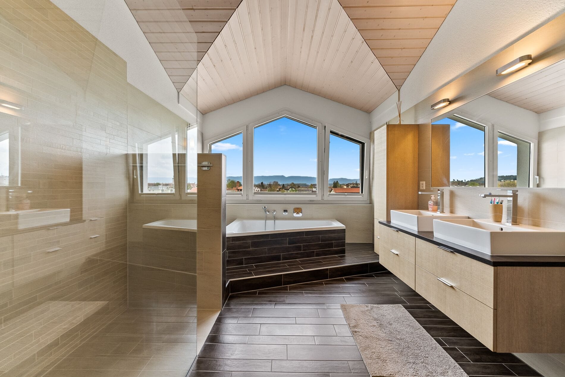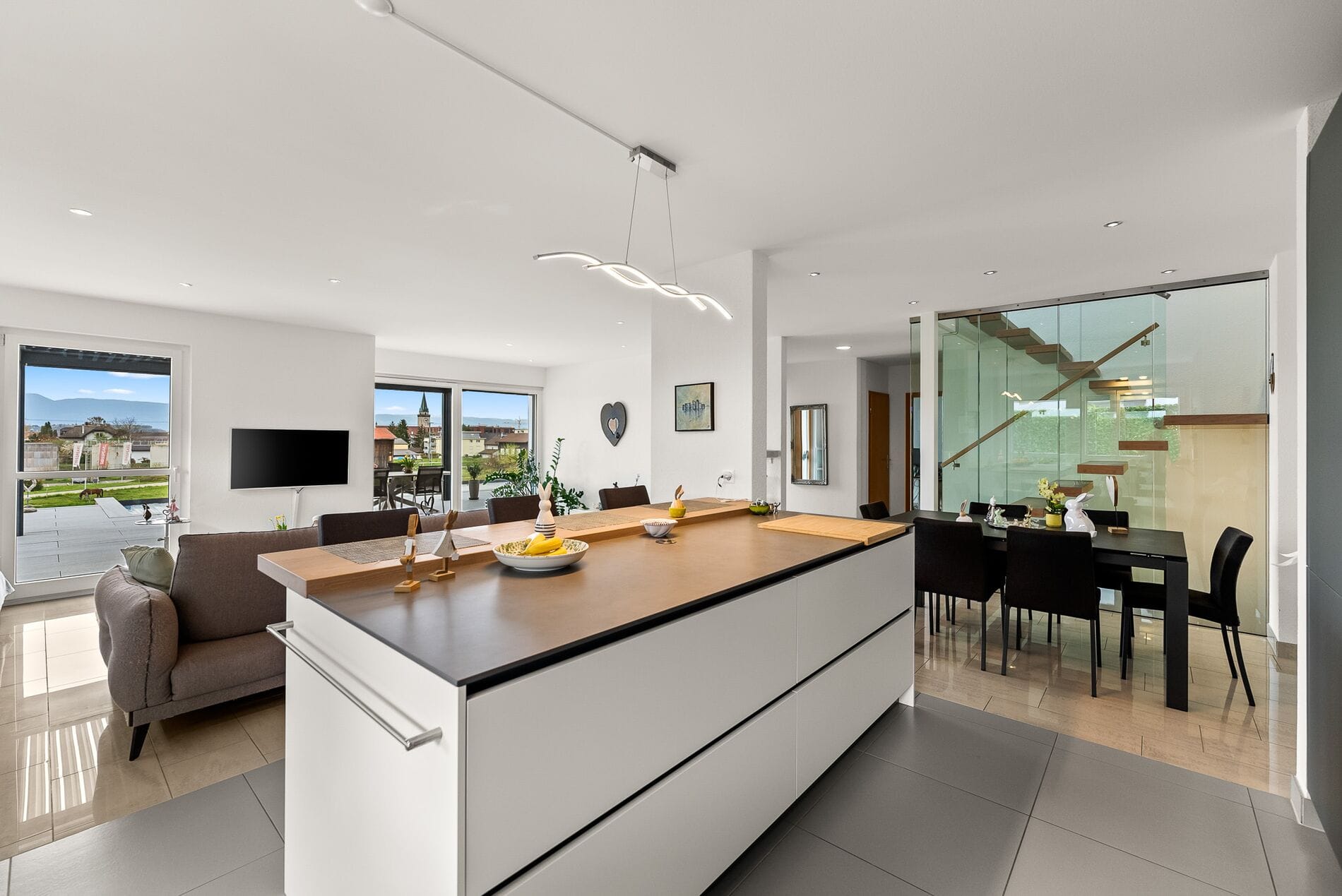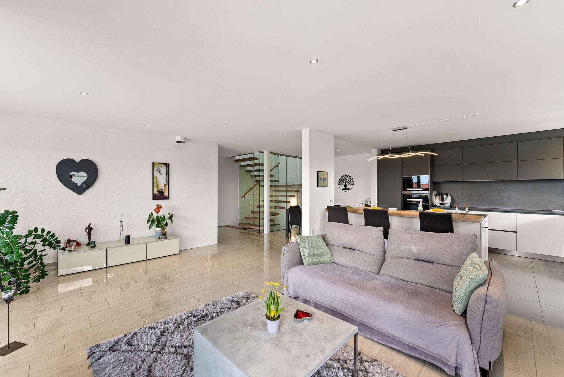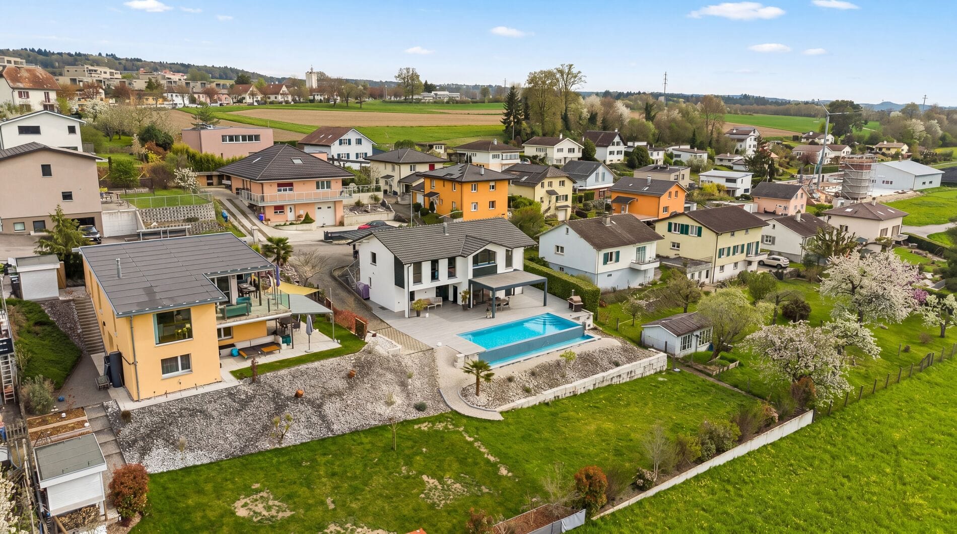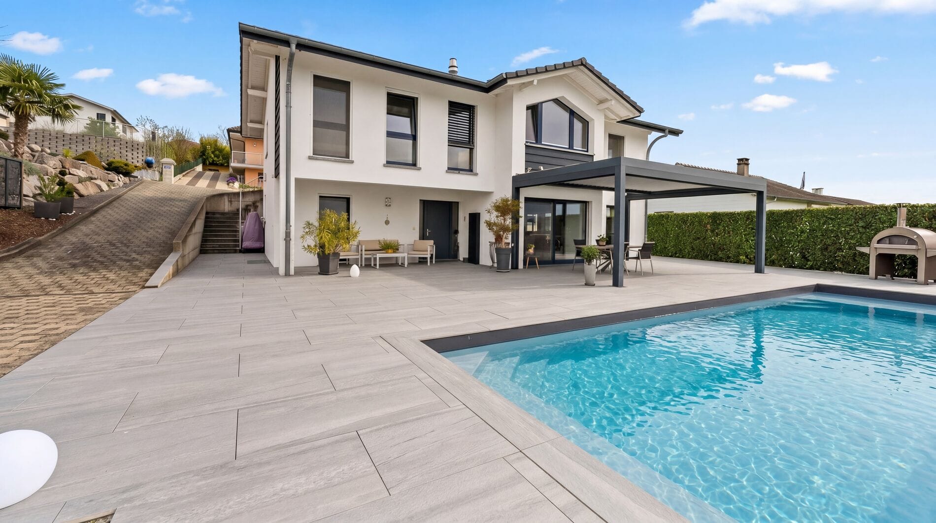 Bienvenue dans une maison familiale chaleureuse, construite en 2000 et parfaitement entretenue. Cette demeure de six pièces et demie conjugue intimité et vie pratique en ville. Son jardin généreux et sa piscine à débordement offrent un cadre idéal pour les beaux jours et les soirées étoilées.