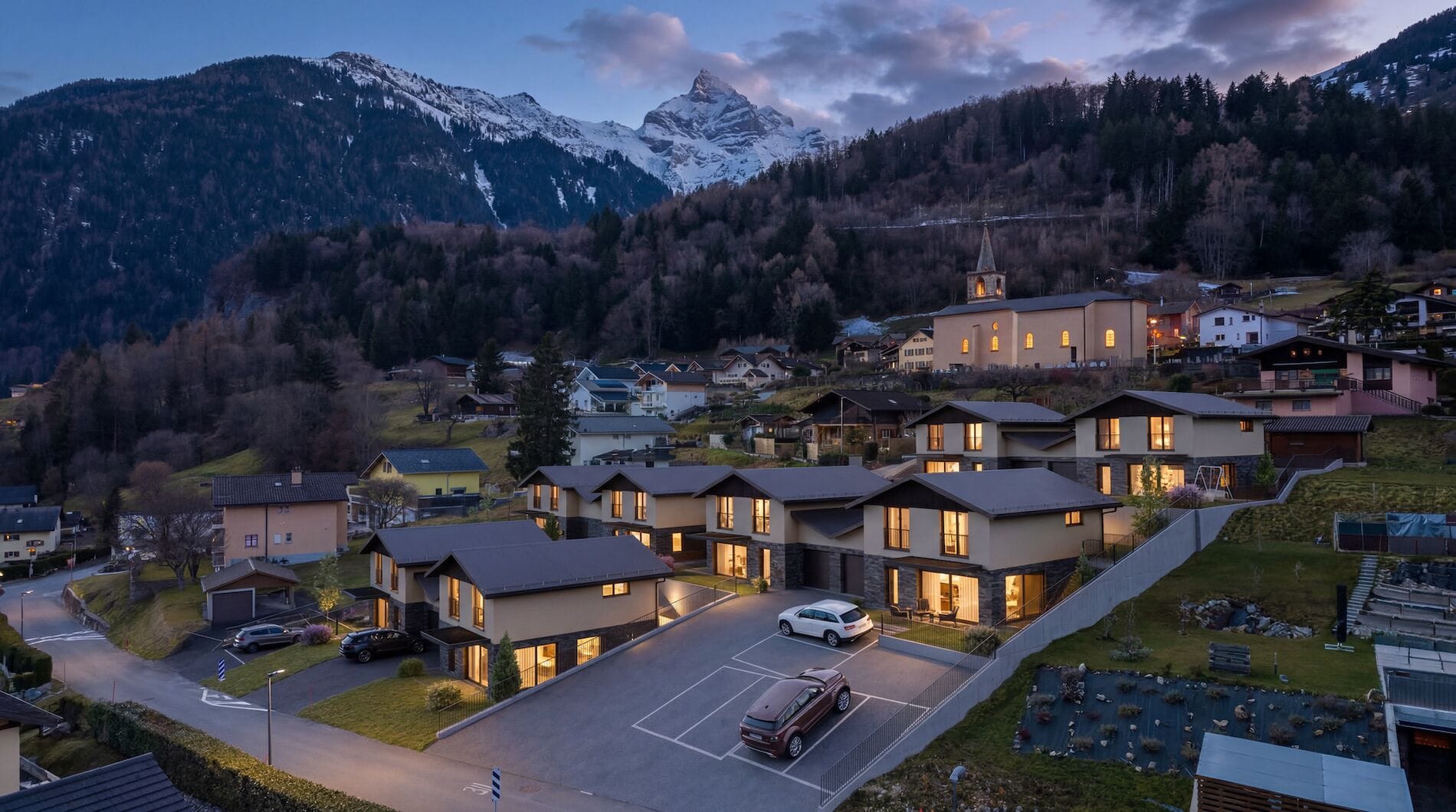 Le projet se compose de 8 villas contemporaines jumelées par le garage, conçues pour offrir confort, luminosité et intimité. Chaque villa dispose d’une agréable terrasse et d’un jardin privatif, parfaits pour profiter pleinement du panorama et des beaux jours.