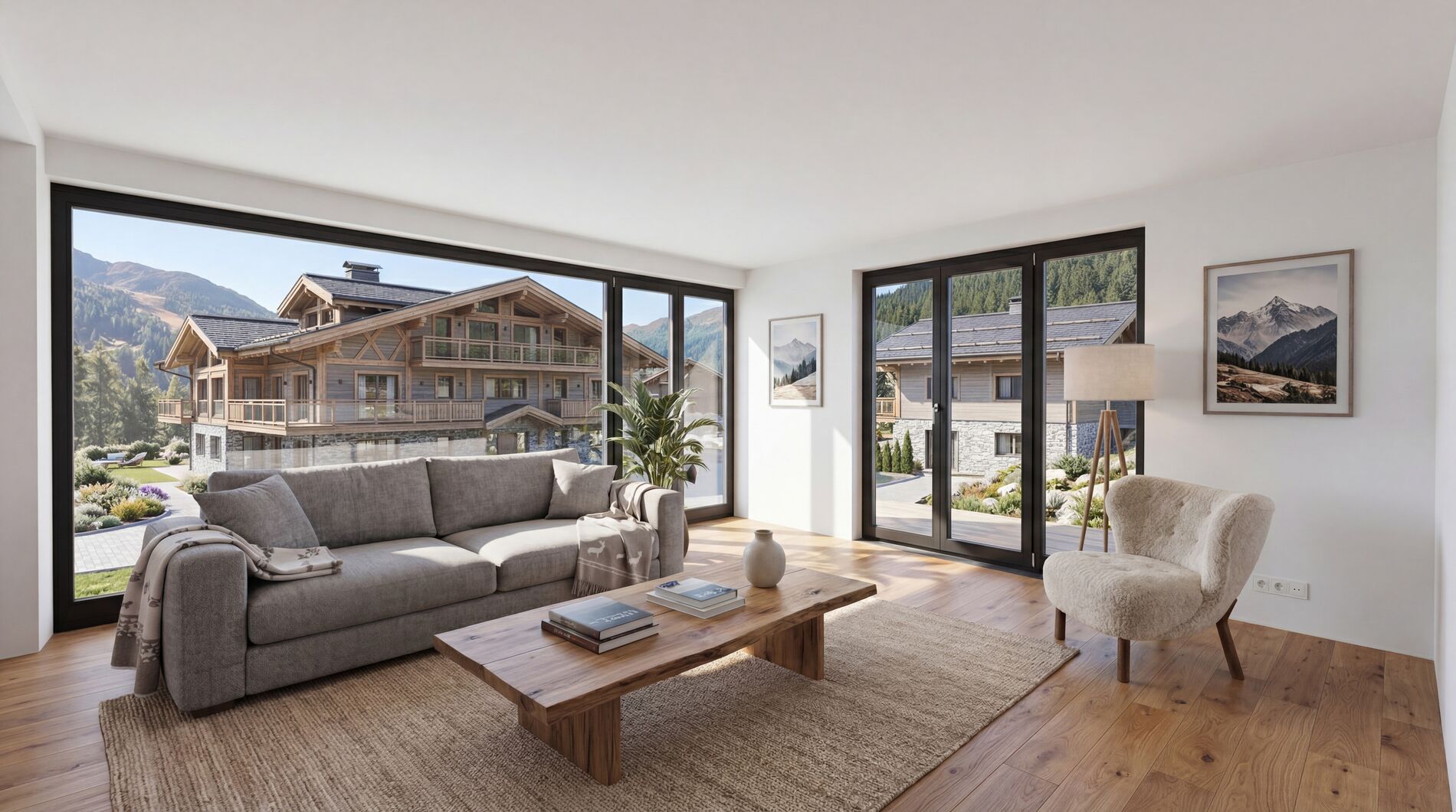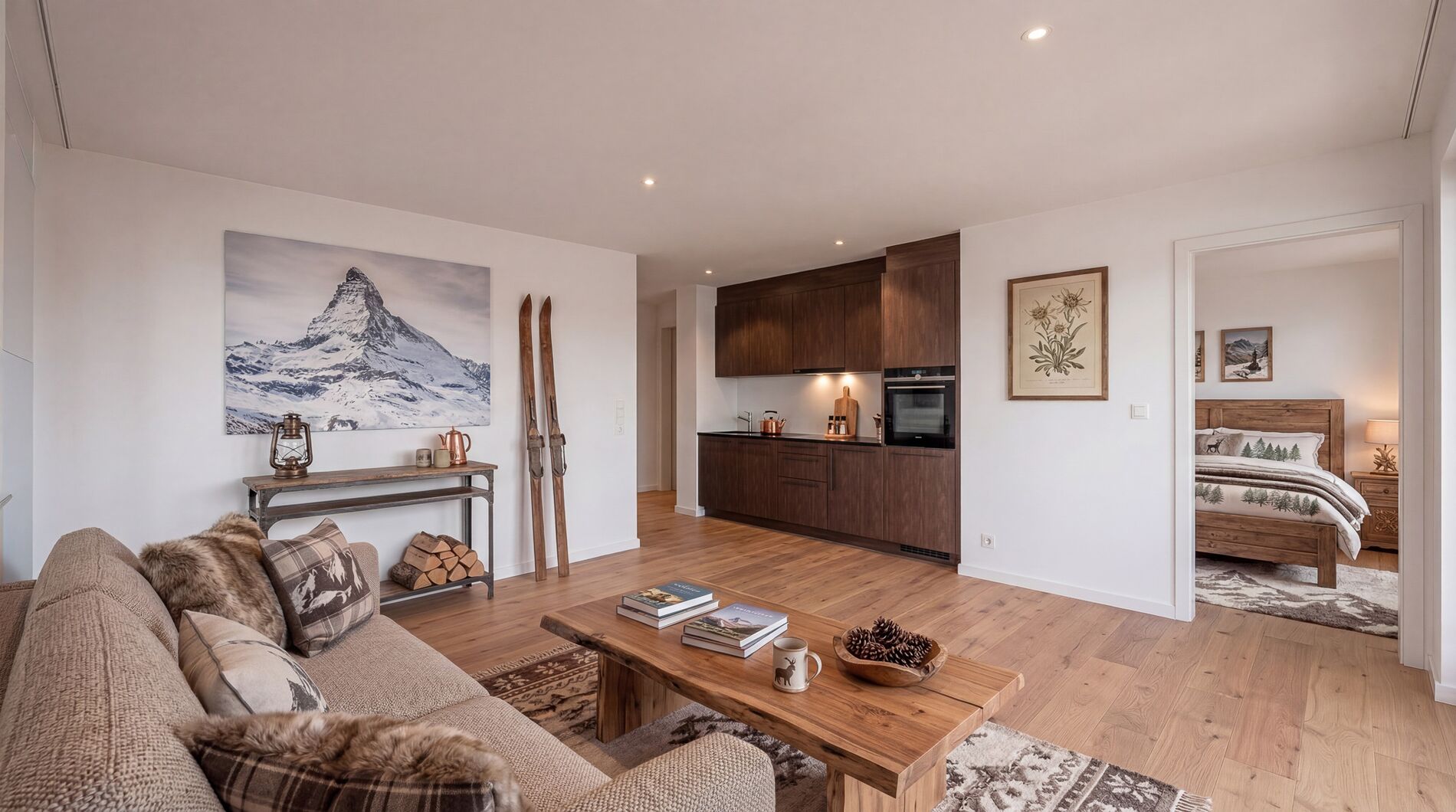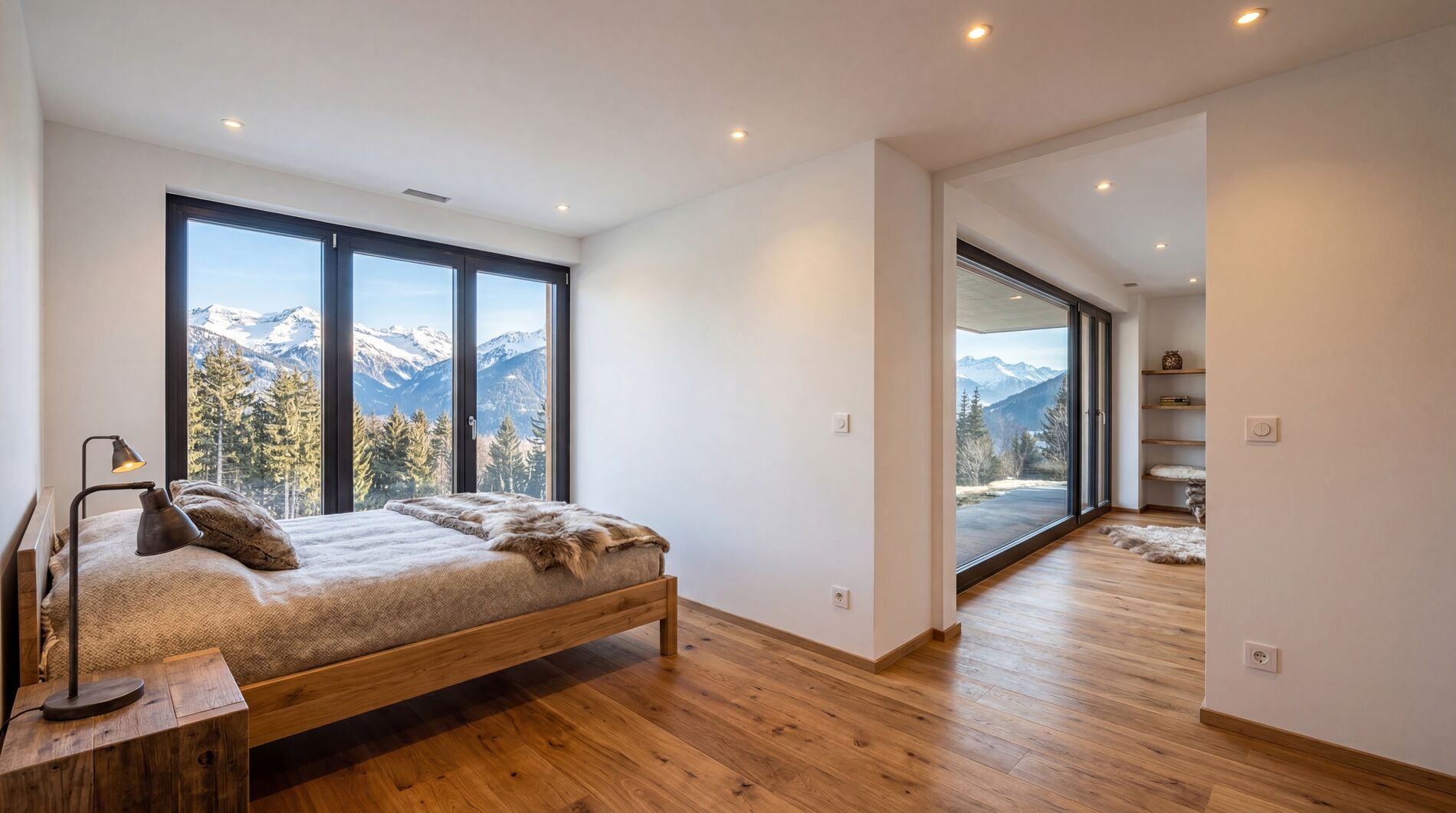 Les finitions, modernes et élégantes, s’intègrent harmonieusement dans un esprit alpin contemporain, alliant confort et authenticité.